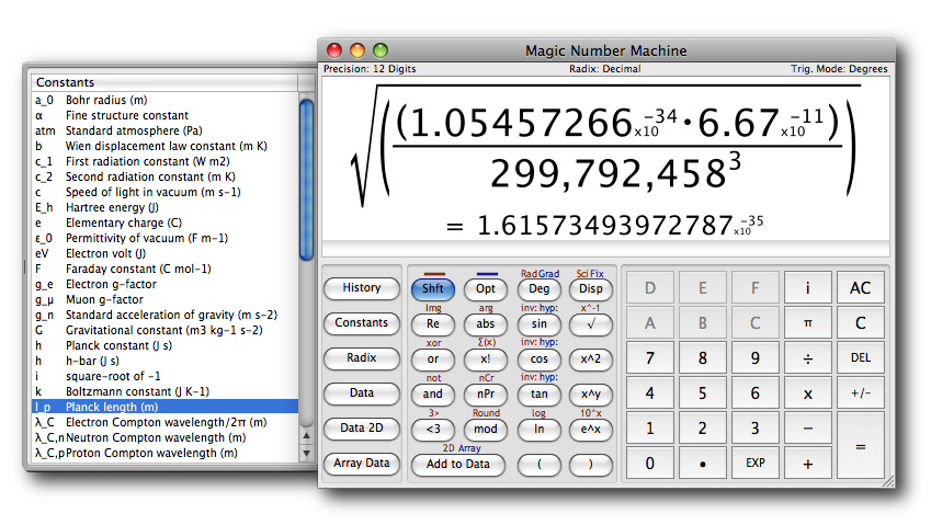 A free, full-featured, graphically laid out, high-precision, scientific calculator for Mac OS X 10.6 and greater (and an older version offering support back to Mac OS X 10.2.8). Full source-code is available too.